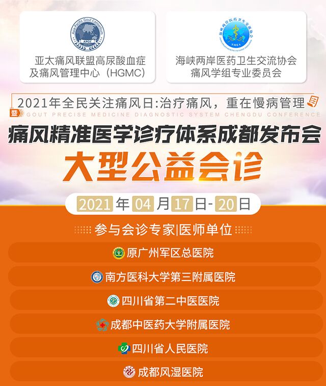 4月17日下午14:00,成都风湿医院2021年痛风精准医学诊疗体系发布会